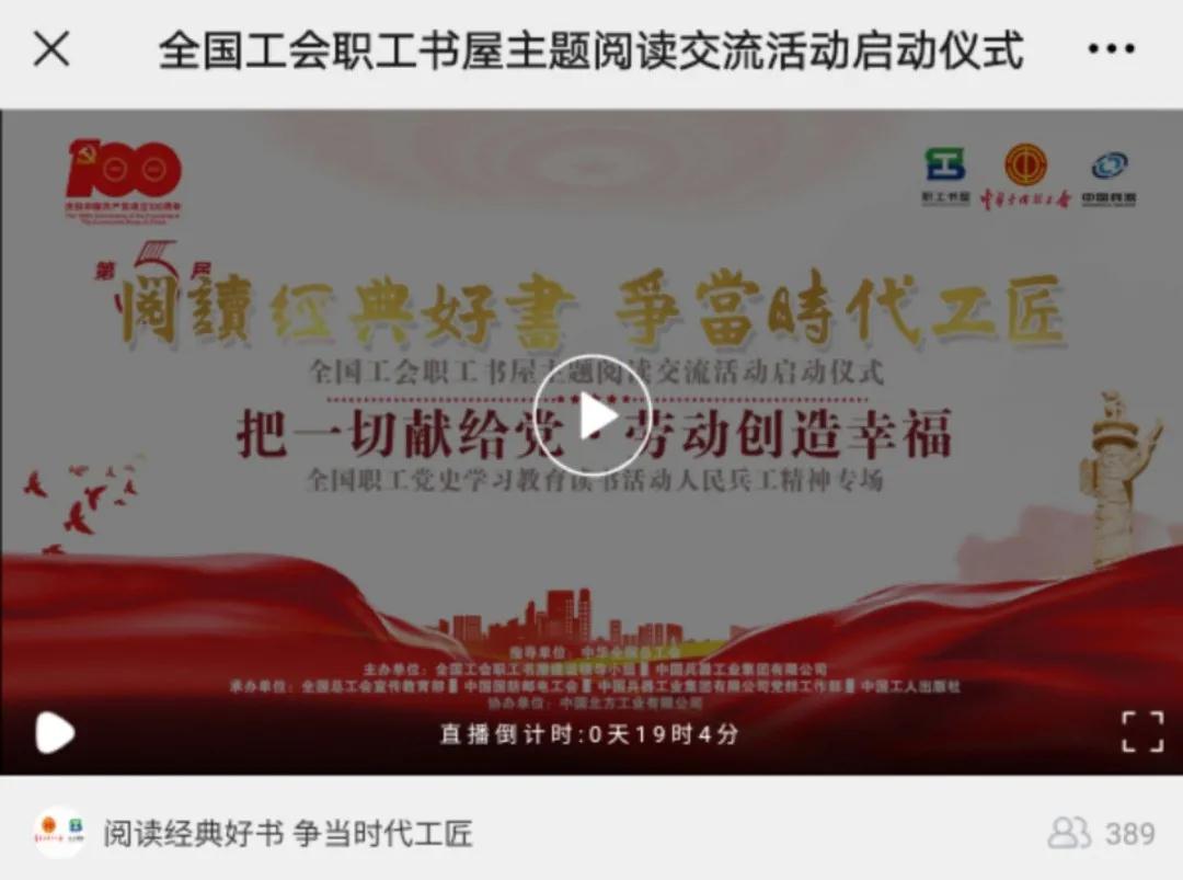 又到一年世界讀書日,激蕩在全國(guó)職工朋友心中的“閱讀經(jīng)典好書 爭(zhēng)當(dāng)時(shí)代工匠”又一次在神州大地叫響。今年,“把一切獻(xiàn)給黨 勞動(dòng)創(chuàng)造幸?!?/strong>成為了閃亮的主題,在億萬(wàn)職工中掀起心潮。 今天(4月23日)下午 15:00,第五屆“閱讀經(jīng)典好書 爭(zhēng)當(dāng)時(shí)代工匠”全國(guó)工會(huì)職工書屋主題閱讀交流活動(dòng)啟動(dòng)儀式暨“把一切獻(xiàn)給黨·勞動(dòng)創(chuàng)造幸?!?/strong>全國(guó)職工黨史學(xué)習(xí)教育讀書活動(dòng)人民兵工精神專場(chǎng)隆重開啟! 多項(xiàng)閱讀計(jì)劃同場(chǎng)發(fā)布、多本經(jīng)典好書現(xiàn)場(chǎng)推薦、多位職工誦讀演繹紅色經(jīng)典、勞模代表進(jìn)行閱讀分享和倡議,讓我們共同在閱讀中感悟紅色經(jīng)典,在活動(dòng)中傳承精神力量。 這一年一度的全國(guó)職工閱讀盛典,你還在等什么! 看!在建黨百年的歷史節(jié)點(diǎn),職工現(xiàn)場(chǎng)誦讀紅色經(jīng)典《把一切獻(xiàn)給黨》,傳承以吳運(yùn)鐸為代表的人民兵工精神,感悟經(jīng)典的魅力和信仰的力量。 聽!來自兵器工業(yè)集團(tuán)的全國(guó)勞模代表在現(xiàn)場(chǎng),向廣大職工朋友發(fā)出閱讀倡議。分享在黨的領(lǐng)導(dǎo)下,大國(guó)重器由跟仿跟研到世界領(lǐng)先的蛻變。 來!聚焦現(xiàn)場(chǎng),正式啟動(dòng)第五屆“閱讀經(jīng)典好書 爭(zhēng)當(dāng)時(shí)代工匠”全國(guó)工會(huì)職工書屋主題閱讀交流活動(dòng),同時(shí)點(diǎn)亮專屬人民兵工精神的火炬,讓閱讀熱情傾力綻放。 40余家省級(jí)工會(huì)新媒體 100余家市級(jí)工會(huì)新媒體 200余家知名企業(yè)工會(huì)新媒體 同步直播 精彩即將上演 直播在哪看? STEP1 關(guān)注全總職工書屋微信號(hào) 點(diǎn)擊下方菜單欄-活動(dòng)專區(qū) 觀看直播啦 還可以同步觀看圖片直播 記錄下每個(gè)精彩時(shí)刻 |