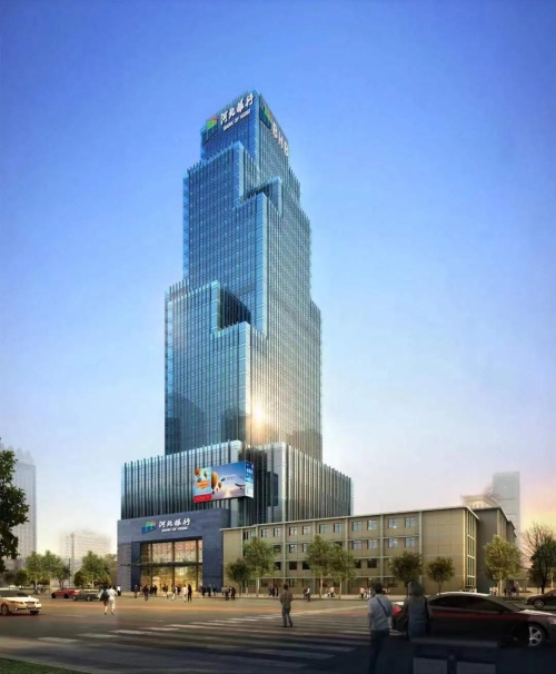 河北銀行股份有限公司新辦公樓建筑物位于石家莊市長安區(qū)建設(shè)南大街21號,占地面積10408平方米,建筑面積110453.13平方米,總高度166.8 米。方案在設(shè)計過程中充分考慮到設(shè)計需求,在遵循節(jié)源開流原則、現(xiàn)代辦公原則、以人為本原則、綠色環(huán)保原則的基礎(chǔ)上營造簡潔大方、安全實(shí)用、綠色環(huán)保、科技敏捷的現(xiàn)代辦公氛圍。