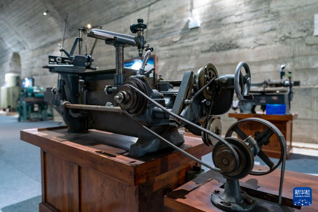 這是5月16日拍攝的中國(guó)光學(xué)歷史博物館內(nèi)收藏的螺紋車(chē)床。