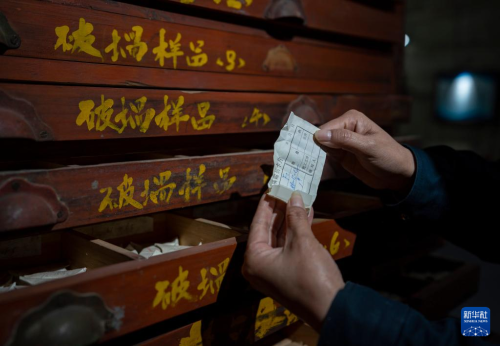 是5月16日拍攝的中國(guó)光學(xué)歷史博物館內(nèi)收藏的一臺(tái)玻璃長(zhǎng)刻度機(jī)。  5月16日,工作人員在展示玻璃樣品柜內(nèi)的一個(gè)玻璃樣品。