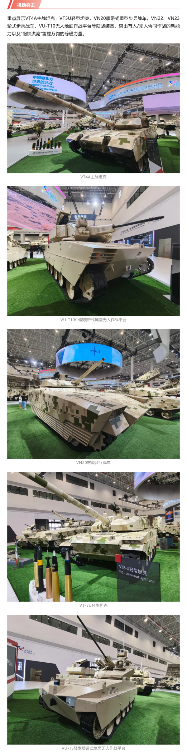 11月12日-17日,中國兵器工業(yè)集團(tuán)有限公司將重裝亮相第十五屆中國航展。在這場盛會上,兵器工業(yè)集團(tuán)帶來了數(shù)智賦能軍貿(mào)合成旅作戰(zhàn)體系,全方位展示我國陸軍外貿(mào)武器裝備發(fā)展最高水平、最新突破、最前沿成果。